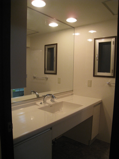 入間市久保稲荷F様邸で洗面所をリフォーム 2026年1月5日 最終更新日時 : 2026年1月5日 m-arai 間口が広く、すっきりした洗面室へ! 基本情報 施工時期2014年工期3日費用 洗面所 集合住宅 担当者より 集合住宅の洗面台としては、間口が広いタイプになります。鏡は既存のまま(1面鏡)、側面の収納と洗面台(カウンター式)を交換しました。 洗面器下部は収納タイプでなく、ごみ箱や、脱衣カゴが入る様にオープンにしました。 洗面器脇の収納は、オーダーで作成しました。内部のものがはっきり見えないように、半透明にしました。