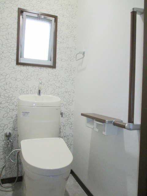 入間市小谷田T様邸のトイレをリフォーム 2026年1月5日 最終更新日時 : 2026年1月5日 m-arai 新しく手すりを設置しました! 基本情報 施工時期2018年工期2日費用 トイレ 戸建て 担当者より 2箇所あるトイレの1階のトイレになります。 器具交換、内装張替えと、新しく手すりを設置しました。 手すりは事前に(内装前)手すりの下地を入れてます。(力が加わるものなので、必ず下地が必要になります) 内装は正面の壁にリーフ柄を張り、アクセントを付けました。