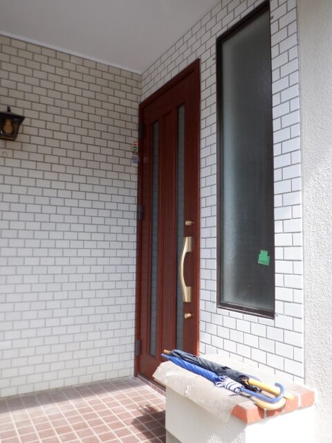 新しく貼ったタイルも既存部と違和感なく仕上がりました。お客様からは以前より玄関が明るくなったと喜びのお声をいただけました。