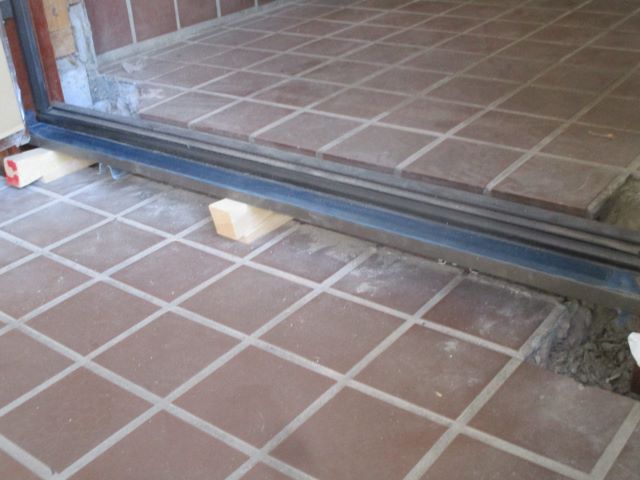 木製のドア枠も取外し、新しくドアと枠を取り付けています。幅や高さが元のドアとは異なるため、壁や床を一部解体し、新たに玄関口を作っています。