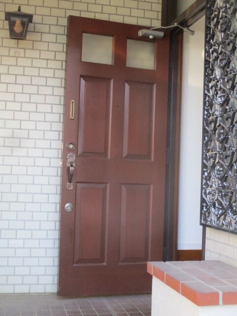 木製の玄関ドア交換をご依頼いただきました。本工事では、出入の幅が狭くなってしまうためカバー工法を避けました。