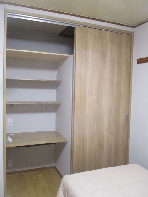押入は整理すれば収納減でも大丈夫とのお話をいただいたので、半分をデスクスペースにしてご提案しました。