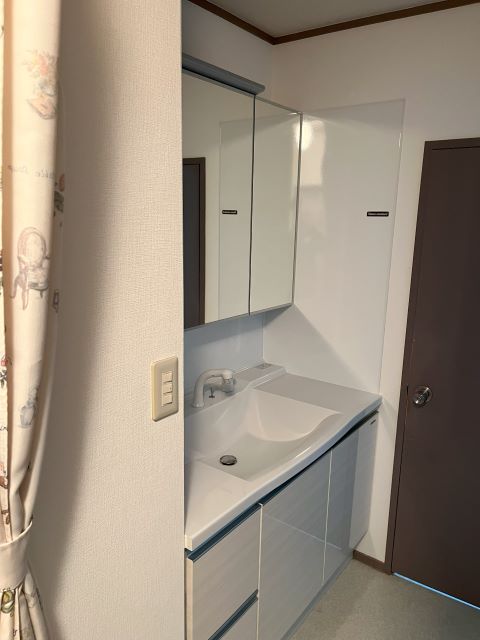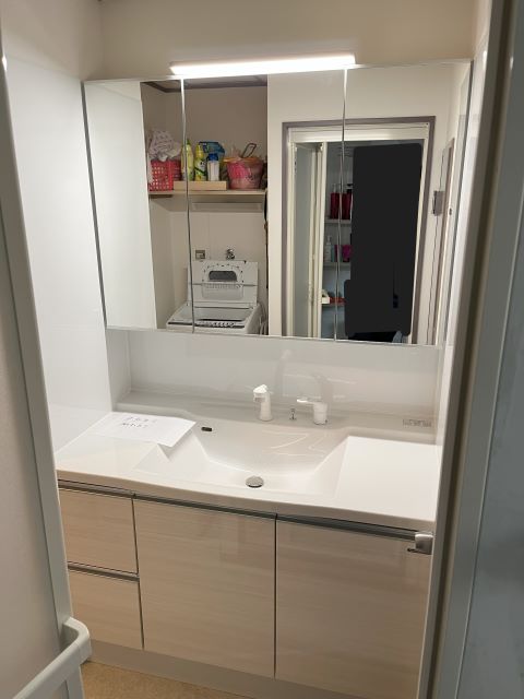 ピッタリサイズの洗面化粧台 2026年1月5日 最終更新日時 : 2026年1月5日 m-arai 特注寸法でピッタリサイズの洗面台! 基本情報 施工時期2024年工期2日間費用35万円 洗面所 集合住宅 担当者より 洗面台交換のご依頼でした。 壁と壁の間に、特注寸法でピッタリと納めさせていただきました。もともとは1面鏡でしたが、収納付きの3面鏡になり収納力も向上しました。 横の壁にホーローパネルを貼りマグネット小物もお使いいただけます。 正面